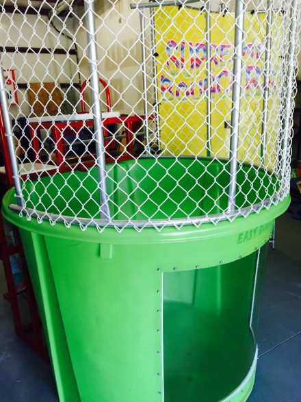 This 500 gallon dunk tank is easily portable by simply attaching to a towable vehicle. A 2 inch ball will properly allow you to move this unit to your desired destination. Depending on water pressure fill time can average about 45mins. Three (3) target balls come with the rental.